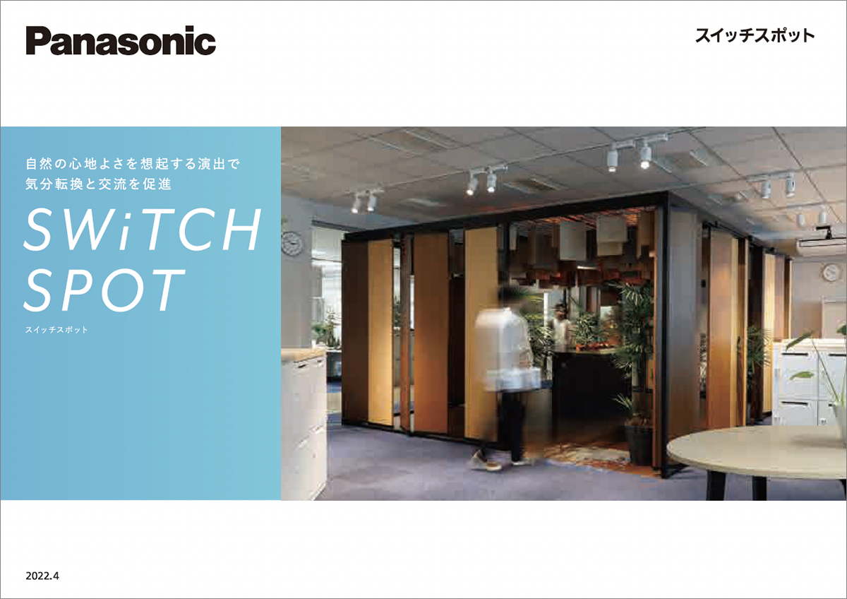 ワークプレイスが分散し、働き方も多様化する昨今。これからのオフィスには、社員がより快適で健康的に働けるウェルビーイングな環境整備が必要になります。「SWiTCH SPOT」は、人が行き交う場所に"リチャージ"を働きかける空間を最適に設置することで、気分転換や交流を促進するソリューションです。詳しくはカタログをダウンロードしてご覧ください。