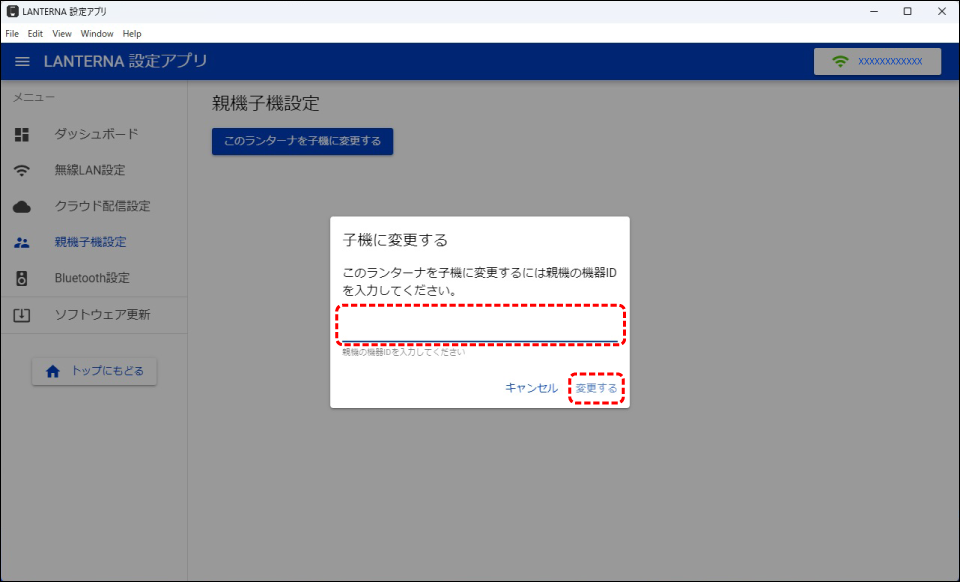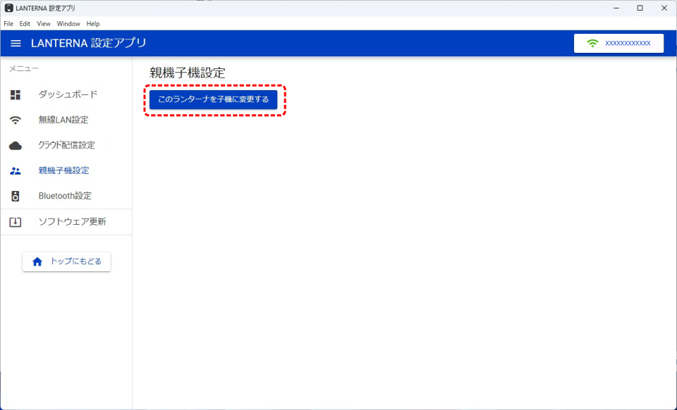 親機子機設定画面が表示されます。 - [このランターナを子機に変更する]をクリックする。