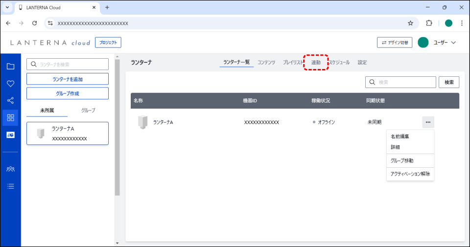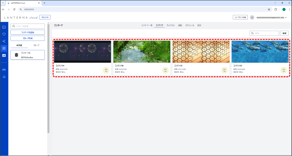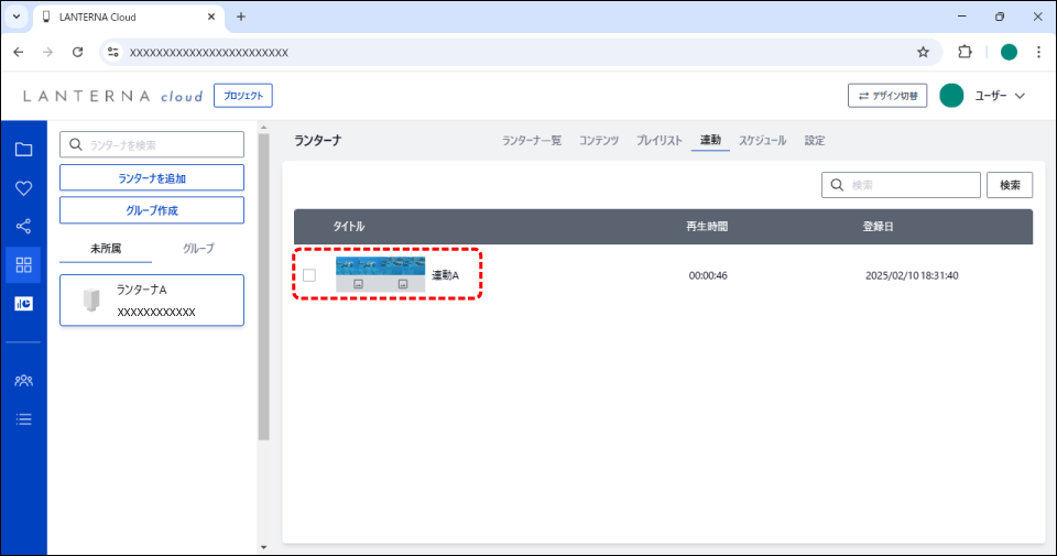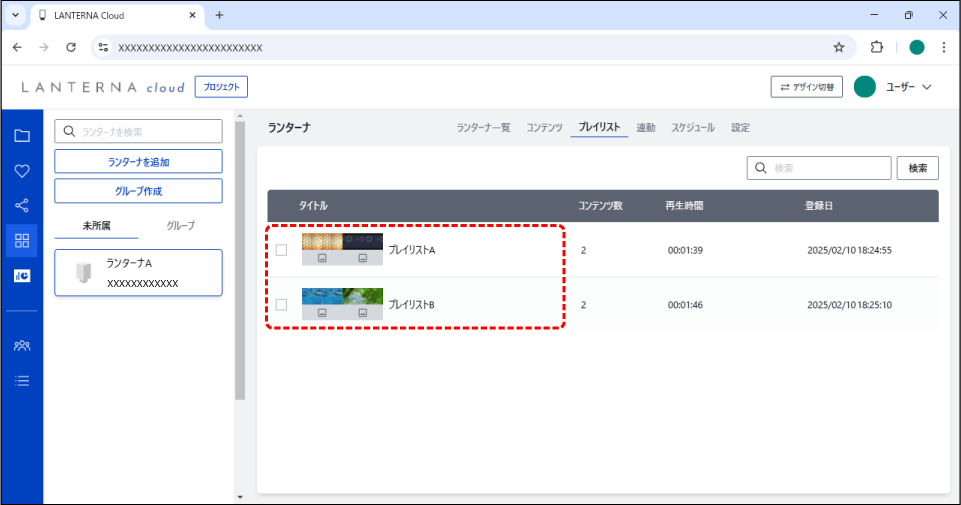 ランターナまたはランターナグループで利用中の「コンテンツ」・「プレイリスト」・「連動コンテンツ」を確認することができます