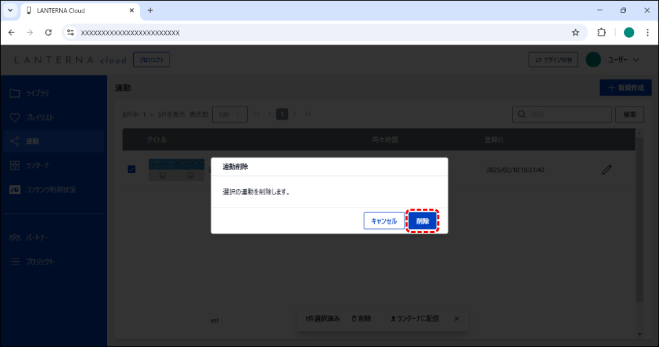 連動コンテンツの削除が完了します。連動コンテンツを削除すると、現在にランターナに配信されている連動コンテンツも削除されます。