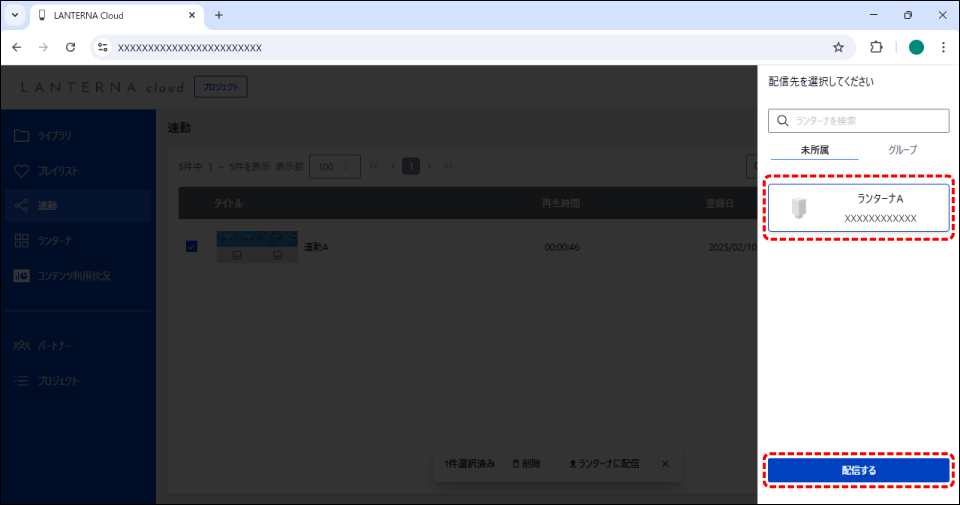 作成した連動コンテンツを、ランターナまたはランターナグループに配信することができます。