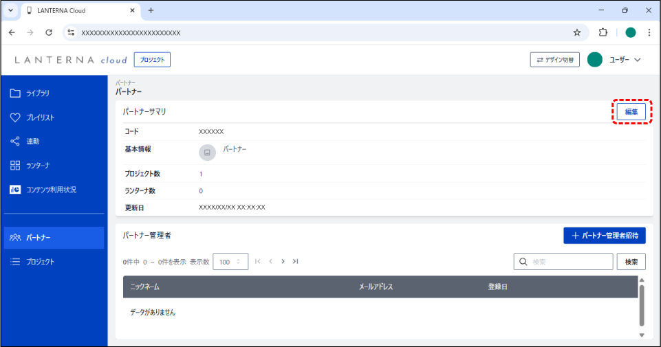 パートナー情報画面が表示されます。 - [編集]をクリックする。