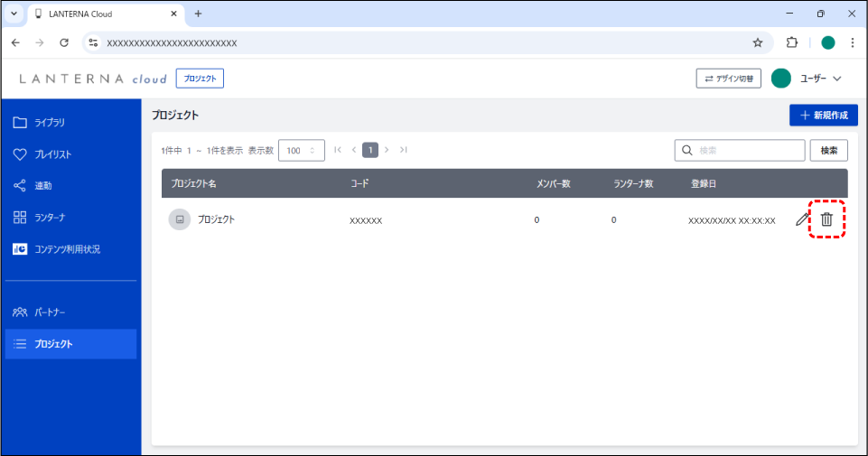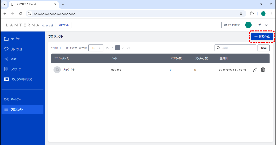プロジェクト一覧画面が表示されます。 - [新規作成]をクリックする。