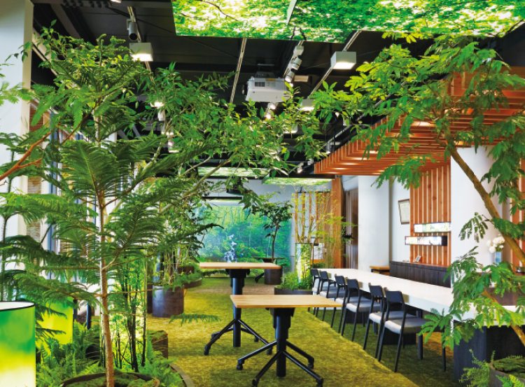「苔の森」を再現したプレゼンルームに「環境音ソリューション」を導入