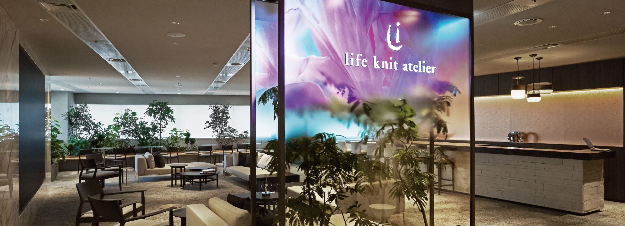 life knit atelierは従来型のショールームを変革し、新しい体験を提供するために誕生した場所で、革新した姿をお客様に訴求するため、コンセプトを具現化できるエントランスを企画しました。それがlife knit designの6種類に分類した感性カテゴリーを立体的に視覚化した半透明のガラススクリーンです。責任者がworXlabを訪れ、エントランスの提案を依頼。その結果、6つの感性フィールドをスクリーンに具現化するとともに、「スポット気流」による風で中の植栽に揺らぎを与え、空気感を演出することになりました。五感に訴え自然を感じさせるシチュエーションによりお客様をお出迎えすることでワクワク感がご提供できました。