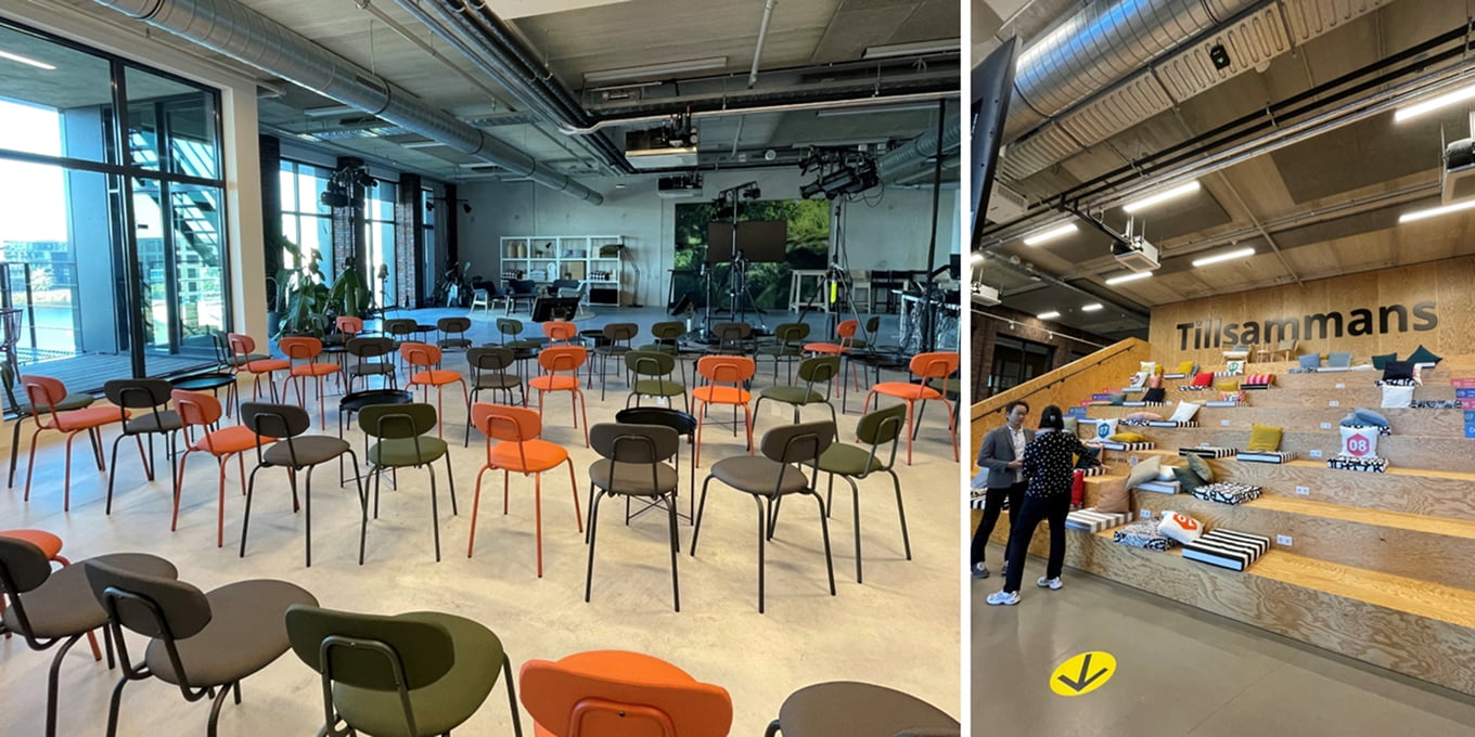 世界的に有名な家具販売店であるIKEAを運営するIngka Groupでは社員同士の自然な会話やブランドの一体感を大切にしながら働く環境を整えています。自社の家具を活用した空間設計や健康的な食事を支援する仕組みなど、ウェルビーイングを支える工夫が随所に見られました。ハイブリッドワークが進む中でも、オフィスに集う価値を高めるための空間づくりが印象的で、働く人の心と体の健康を支える場としての役割が強く感じられました。