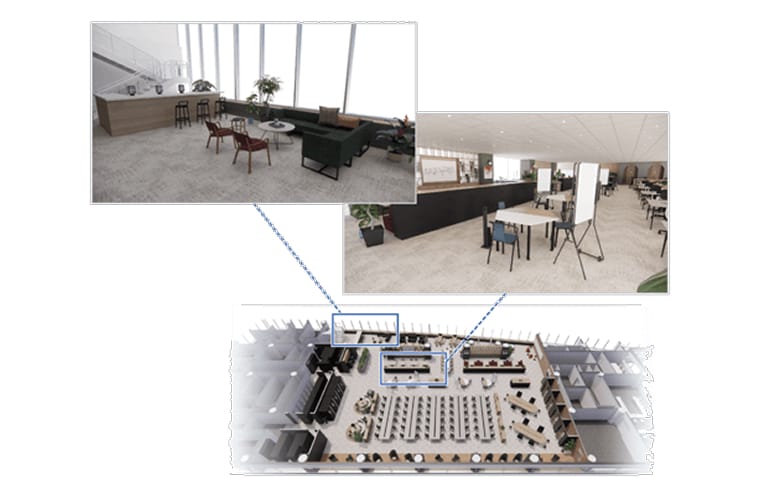 3Dオフィスレイアウト:オフィスイメージを3Dで提示することよりメンバー間の合意形成を図る。