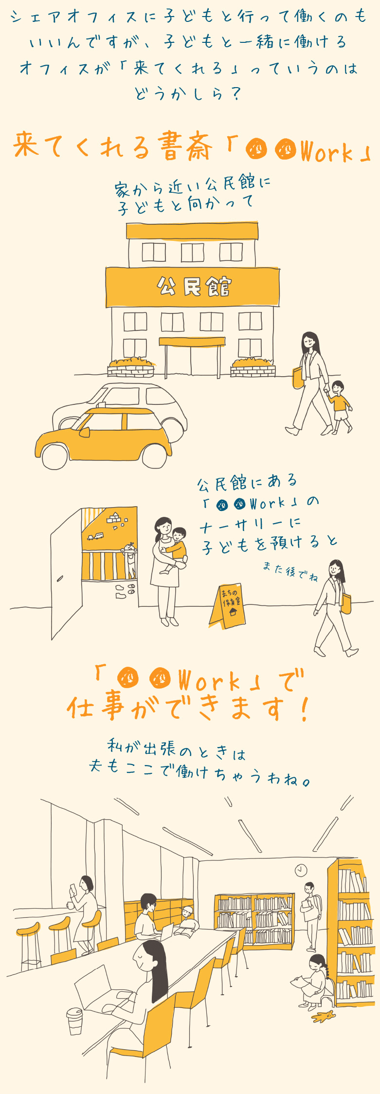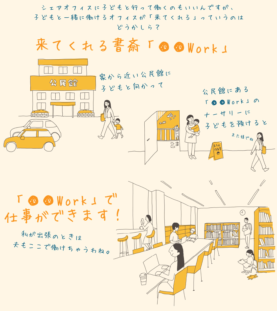 自分の出産と子育てを通して、京都でデスク横に作った場所に子どもを連れてきて打合せをするなどした経験から、子育てなどのくらしを職場に持ち込むといった新しい働き方が広がっていけば良いと思います。