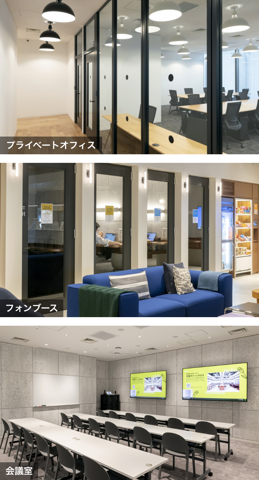 内装からWi-Fi環境、什器までがセットアップされているので、契約した翌日からでも仕事ができる環境をご提供しています。ラウンジや会議室などの施設はシェアリングできるのでとても効率的に働けるだけでなく、カード1枚で世界中の施設が利用できるのも魅力的です。