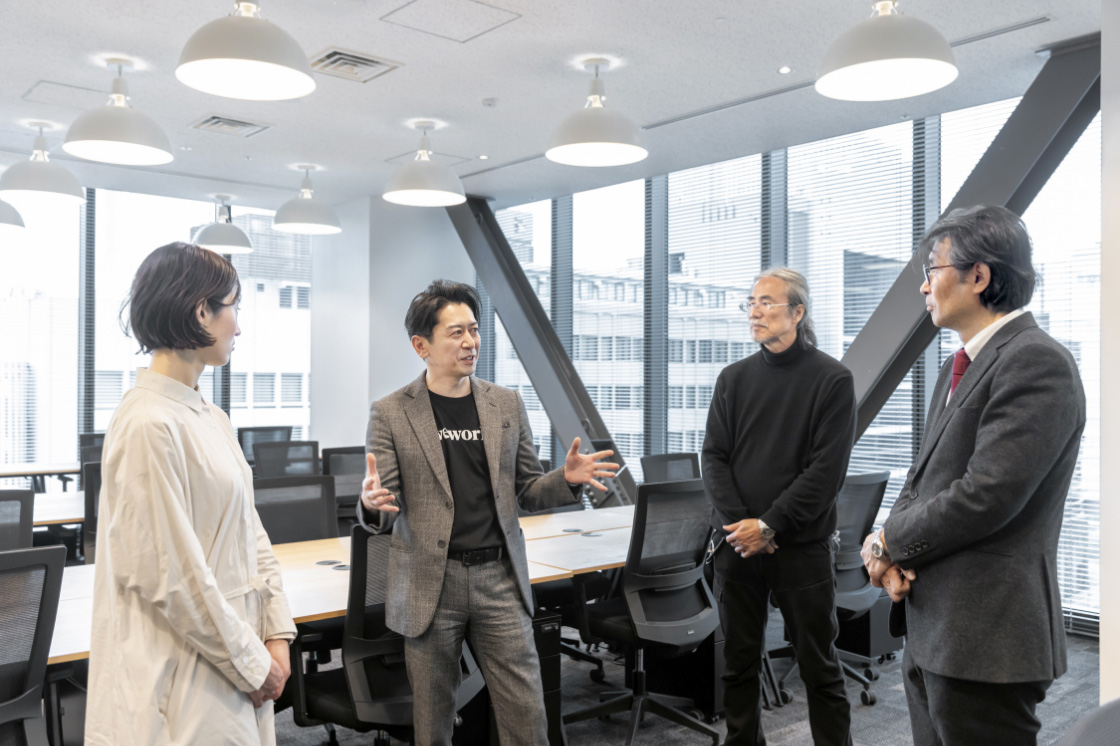 私は入社後から拠点開発や営業部門の責任者を務めていましたが、当社がソフトバンク株式会社の100%子会社になった2024年にCOOに就任し、今年2025年3月にCEOに就任しました。COOになって初めて取り組んだのが名古屋の新拠点です。駅直結のJRセントラルタワーズのオフィスフロア最上階である50階、特徴的な扇形のフロア形状で、素晴らしい眺望の拠点です。それまでのグローバル基準では、プロダクトチームとフロント業務、コミュニティ、営業などの組織は縦割りでしたが、私はこれらの組織を横断する「Growth」というチームを作りました。そして、営業やコミュニティ、マーケティングなど多くの部門の意見を取り入れ、扇形の部分をプライベートオフィスにしてプレミアム感のある設計にしました。この設計・施工の責任者がプロダクトチームのヘッドである真秀津(マシューズ)です。