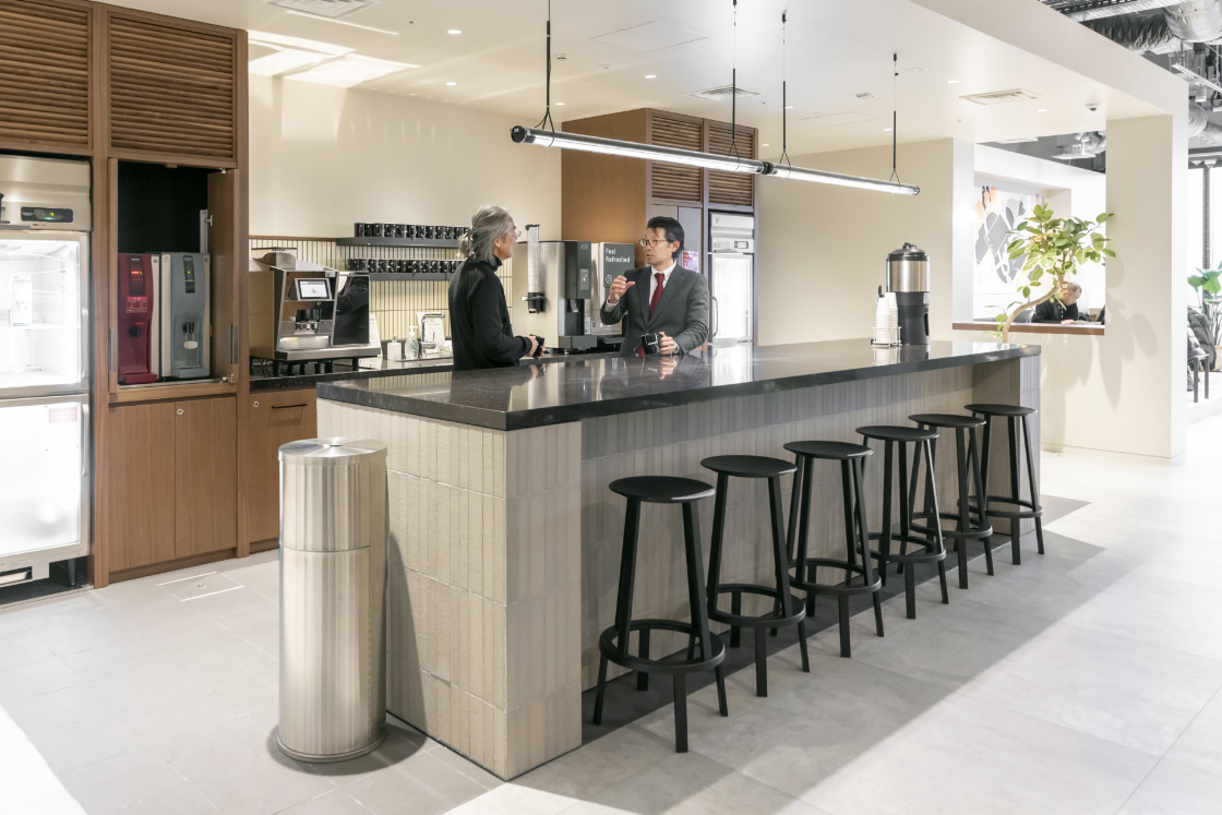 ラウンジ の「パントリー」では、各種飲み物がフリーで楽しめる。メンバー同士や他の会員の方とフランクな会話ができ、信頼関係を築くことができる。