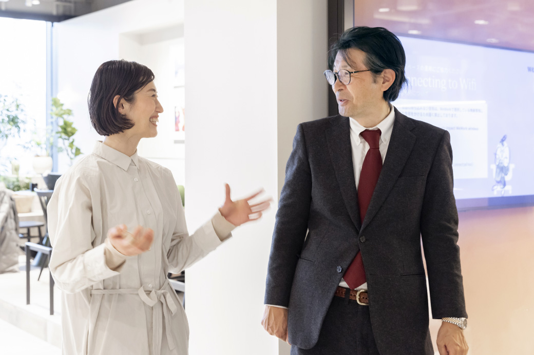 仲先生大部屋の中にいろんな企業がいるって最高の状態だと思います。日本企業の多くは秘密主義で自前主義ですが、ここは逆に見通しも風通しも良くてとても良いですね。多くの企業は新しいアイディアの種ができても隠してしまい、結局育てることができずにいます。種のうちに多くの人の意見を聞いた方が実のなる樹に育つと思うのですが、隠してしまいます。私が一時、お付き合いしていた企業は、素晴らしい製品を開発したのに、完璧なものを追求して時間が経ち過ぎて商品化できませんでした。WeWorkでは、入居している企業同士がマッチングすることはあるのですか。
