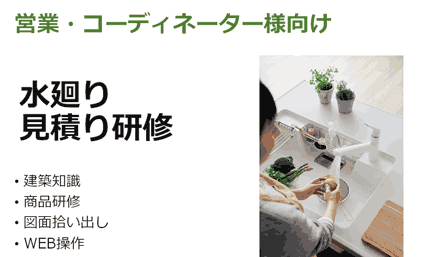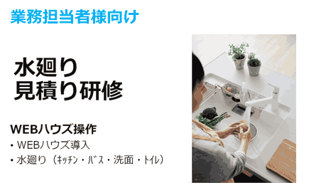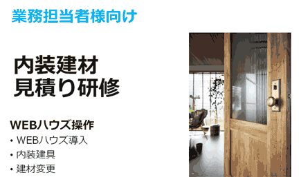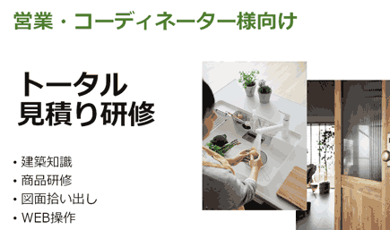 さらに、研修パックは商品研修と見積をセットにした営業、コーディネーター向けと、WEBハウズ操作のみに特化した業務担当者向けのパックを用意しています(※積算専任担当者様には営業、コーディネーター向け研修パックをご利用ください)