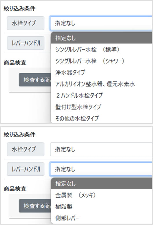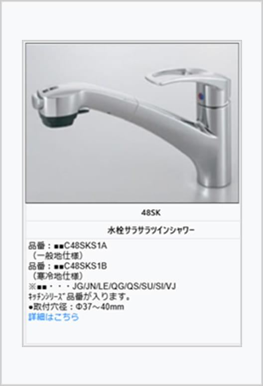 - ※当システムはパナソニック製システムキッチンの水栓金具を検索するものとなっており、