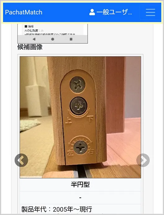 他社製戸車などを検索した場合も、当社商品が選定されます。 - ※「写真de判定」は、PachatMatchの画像識別システムを活用します。