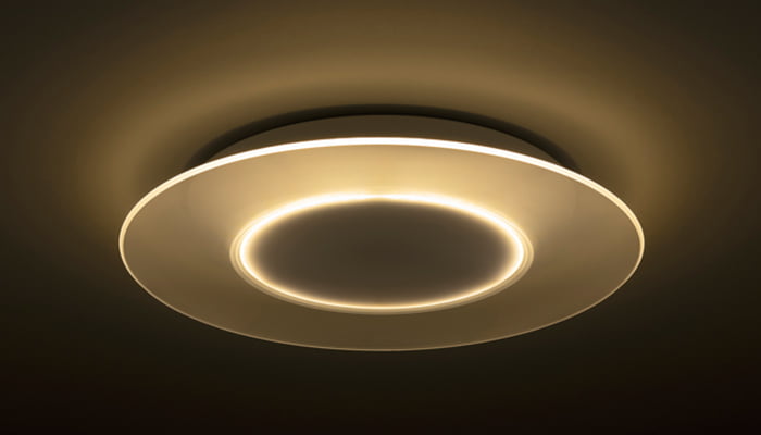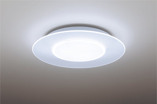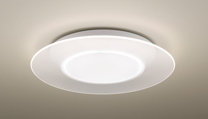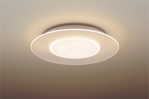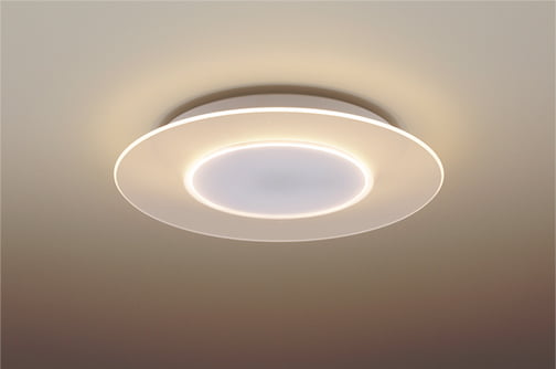 導光パネルには、パナソニックがこだわった100μmの微細プリズム技術を採用しており、光がきれいにむらなく広がります。さらに、シーリングライトの枠を超えたデザイン性の高さも魅力の一つです。点灯時は柔らかな光が空間に広がり、消灯時もすっきりとした器具デザインで空間に馴染みます。