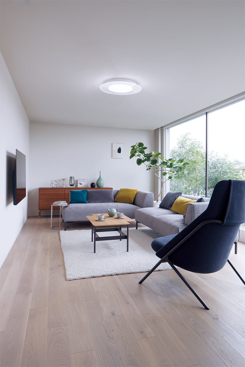 新築やリフォームの際に工事などの制約がある場合や、寝室や個室でもあかりに変化をつけたい場合こそ、リモコン一つで手軽に空間も気分も変えられる「エアパネルLED」がおすすめです。シーリングライトのため、特別な工事が不要で取り付けも簡単です。あかりにこだわりたいお施主様や、日々のくらしをより豊かにしたいお施主様に、ぜひおすすめください。