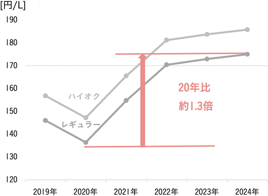 これからの住まいづくりに欠かせない視点のひとつが、以前に「EVのあるくらし」でも取り上げたように「EV(電気自動車)への対応」です。ガソリン価格は、政府補助によって若干ダウンしたものの、20年比の約1.3倍というデータも。CO2排出量削減の取り組みも今後強化され、EVの普及は今後ますます加速すると見込まれています。