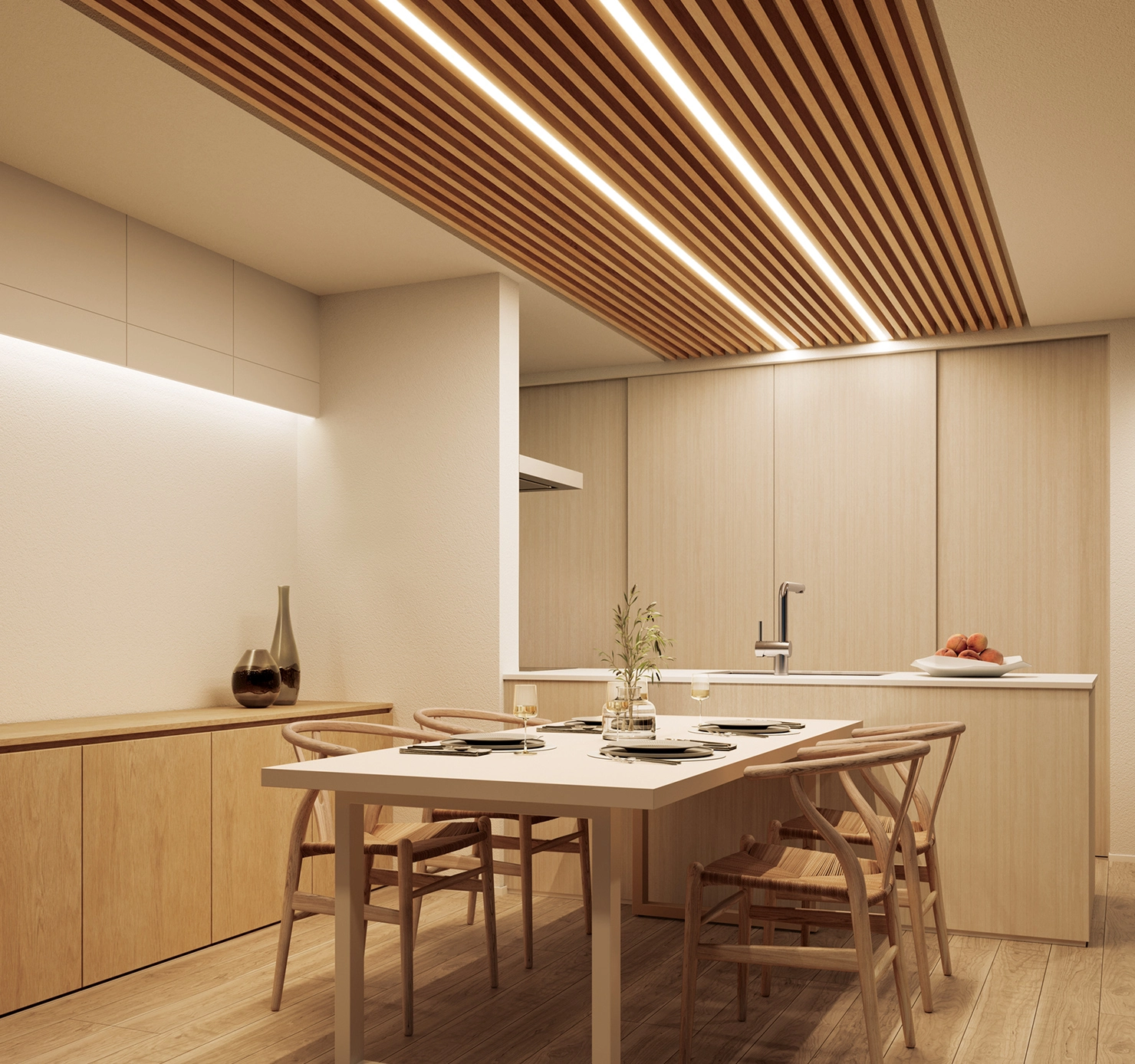 施工の自由度と効率が大きく向上するだけでなく、器具と建築の隙間を最小限に抑えた構造により、空間に自然に溶け込みます。