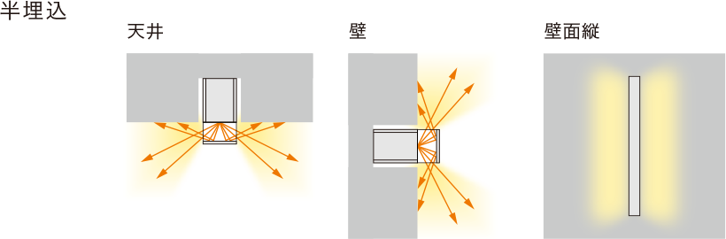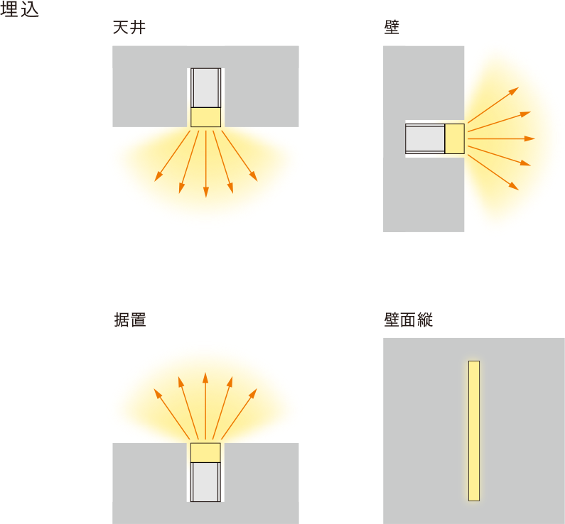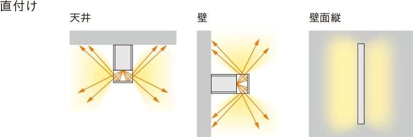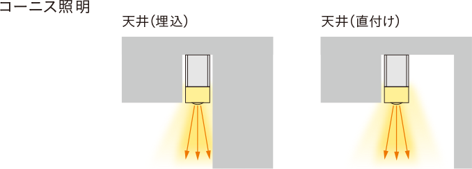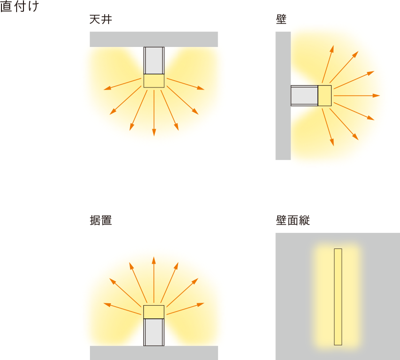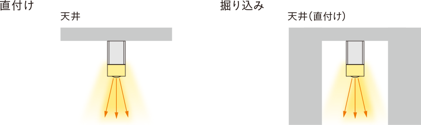 通常天井はもちろん、高天井でも床や壁を明るく照らします。