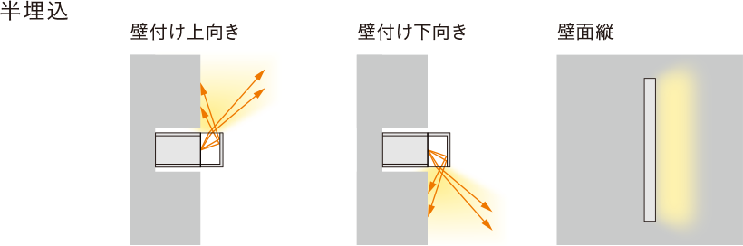 「スクエアスタイル」では、一つの品番で縦使い・横使い・壁・天井への取り付けに対応。設計の自由度が高まり、空間演出の幅も大きく広がります。