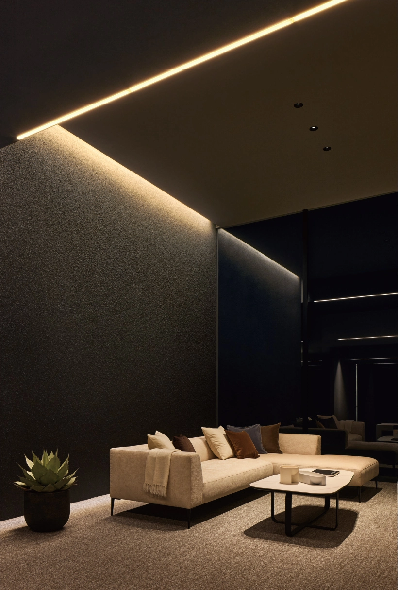温度変化による発光部の微細な材料伸縮を吸収する安心設計により、美しいラインを保ち、空間全体に一体感のある、なめらかな光の演出が実現します。