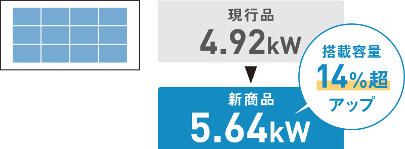 新モデルの「MODULUS ブラックモデル」は、N型バックコンタクト方式を採用したことにより、現行品と比べて最大約14%も発電出力がアップ!同じスペースでも、より多くの電気がつくれるようになりました。