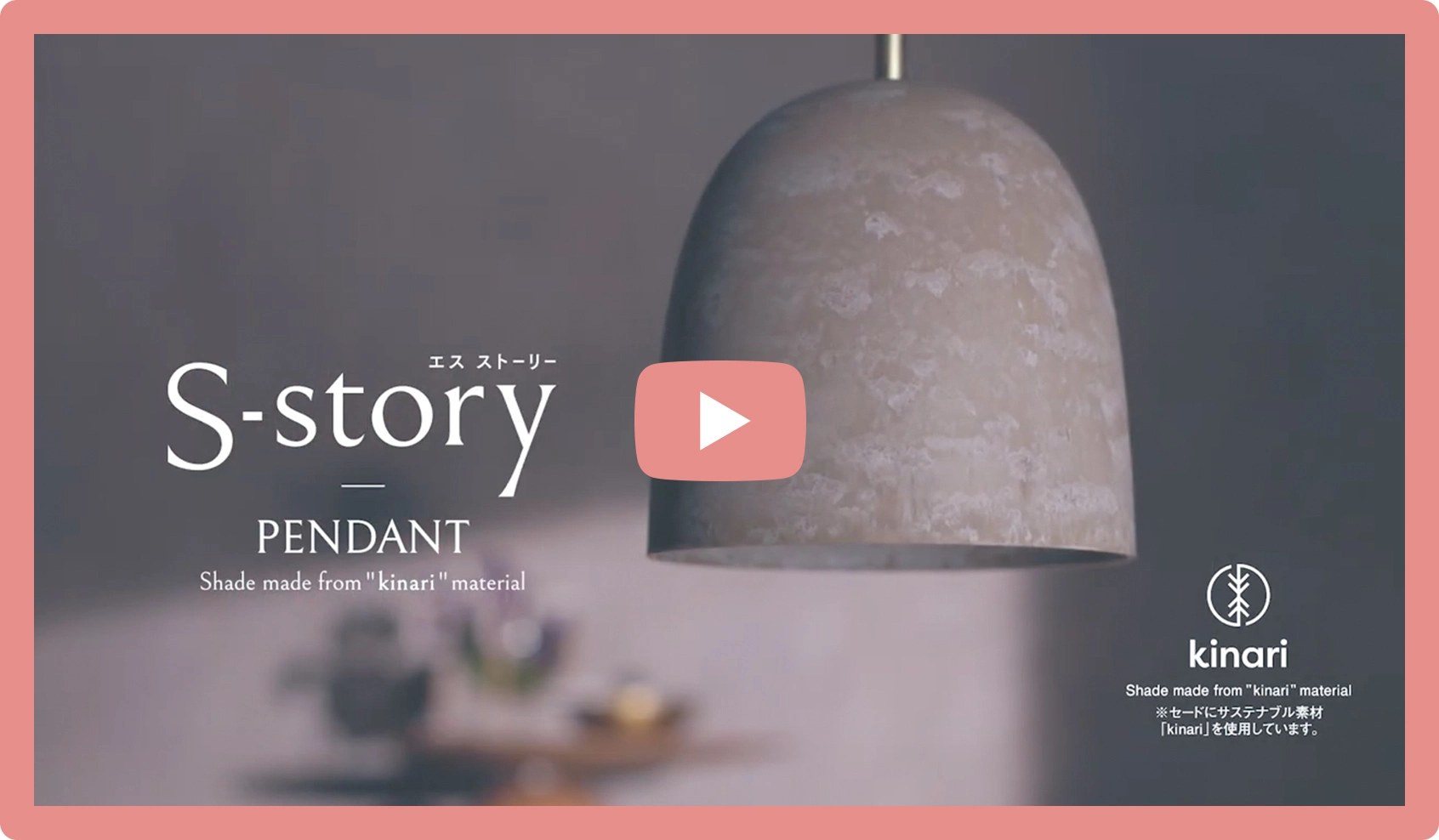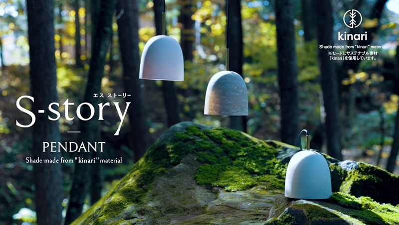 「S-story ペンダント」は、植物由来のサステナブル素材を活用した照明であると同時に、インテリアに寄り添うデザイン性も備えたあかりです。さらに、本製品の売上の一部は環境保全を目的とした取り組みにも役立てられます。