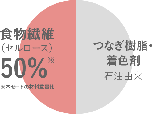 成分の50%に植物繊維を含有させることで、従来の石油由来樹脂の使用量を約半分※にまで低減。新規投入資源の削減に貢献します。