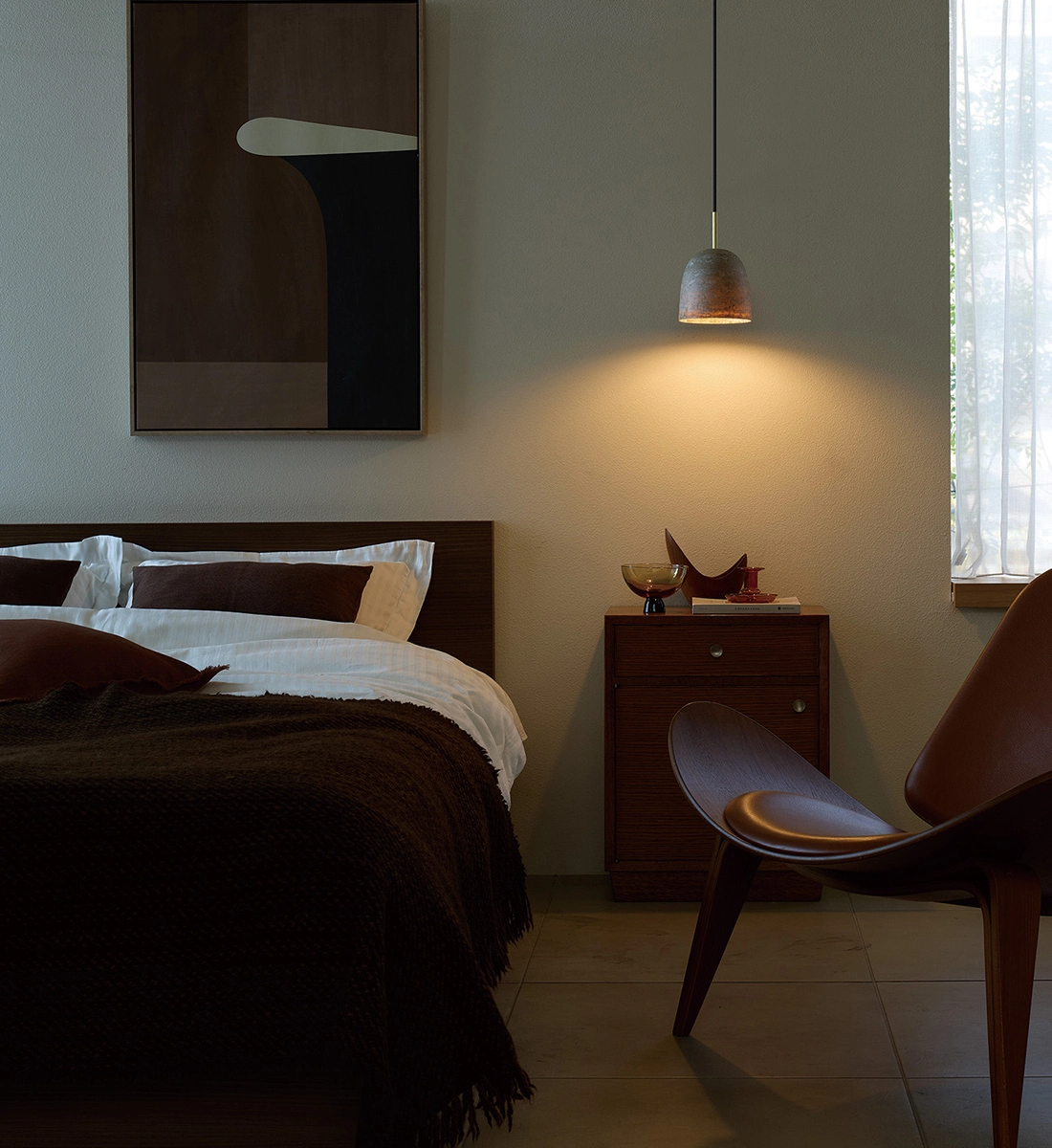 「グレイッシュブラウン」は、光の透過をあえて抑えた設計で落ち着いた雰囲気を演出。ブラウンを基調としたインテリアにあわせると、柔らかな光に包まれたリラックス空間に。