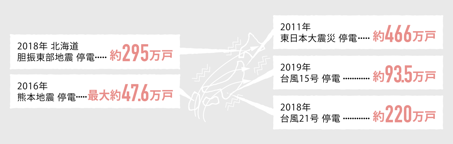 さらに、ここ数年は全国各地での停電も相次いでいます。特に2024年の能登半島地震や、2025年の台風シーズンには、長時間にわたる停電が複数地域で発生し、都市部でも一時的にライフラインが遮断されるケースがありました。
