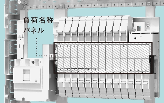 負荷名称を確認しながら配線が行える。分岐回路名ホルダーが残る構造なので、分岐ブレーカの配線時に負荷名称を確認しながら配線できます。