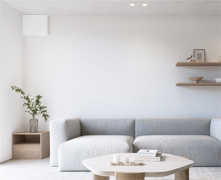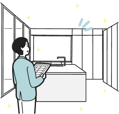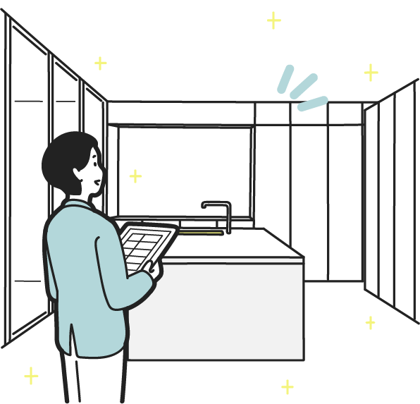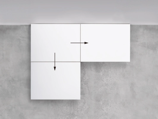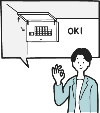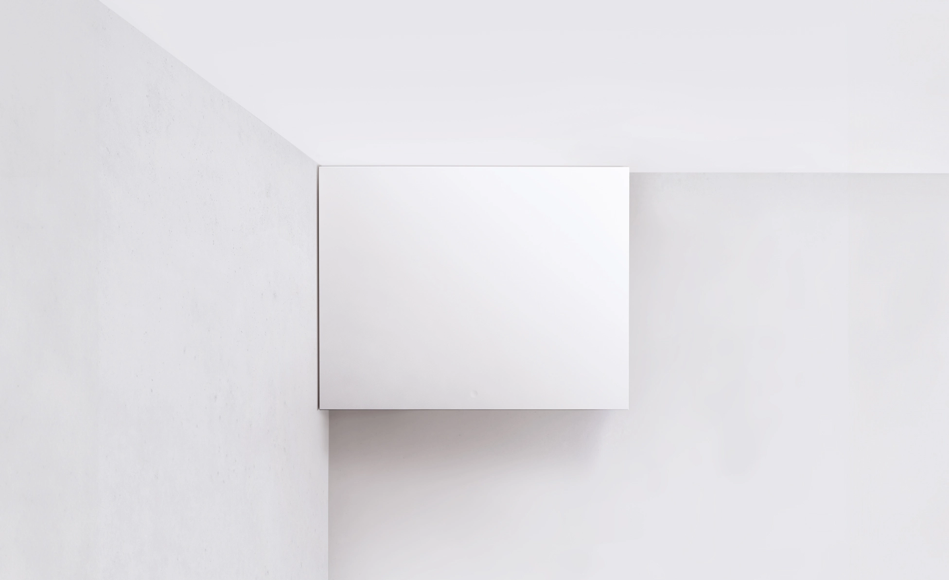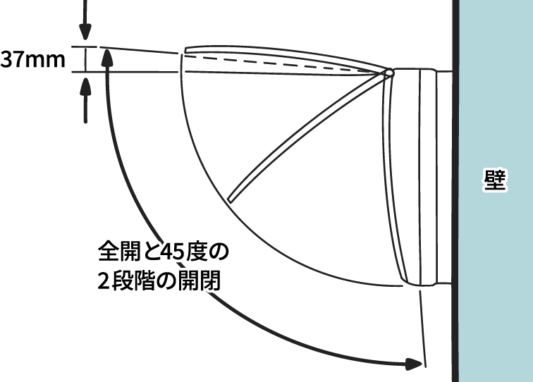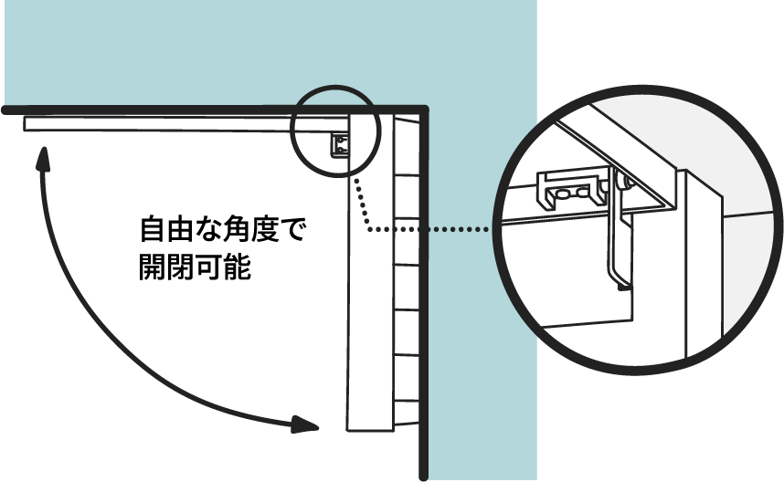 外形四辺を完全な 90°形状にすることで、天井面や壁面、収納キャビネットにぴったり設置できます。カバーはヒンジの位置を見直し、0°から 90°の間で自由な角度止まるため、躯体に干渉せず開閉できるようになりました。