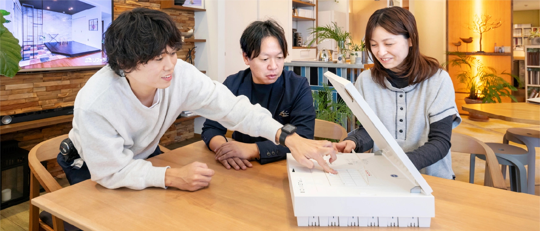 より天井側に近づけられるので、従来の分電盤のように頭に当たってしまうという悩みも緩和できます。設置できる面の自由度が上がりました。こういう商品を武器として持てると、私たちもよりお施主様のこだわりに沿った提案を堂々とできるので嬉しいです。