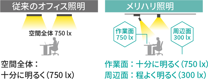 また、ダウンライトには、「ハイパワーな光で、大空間を華やかに。」でご紹介した「フラットランプ」の高光束タイプを採用。机上面の照度確保にも役立つ、実用性の高い商品として活用されています。