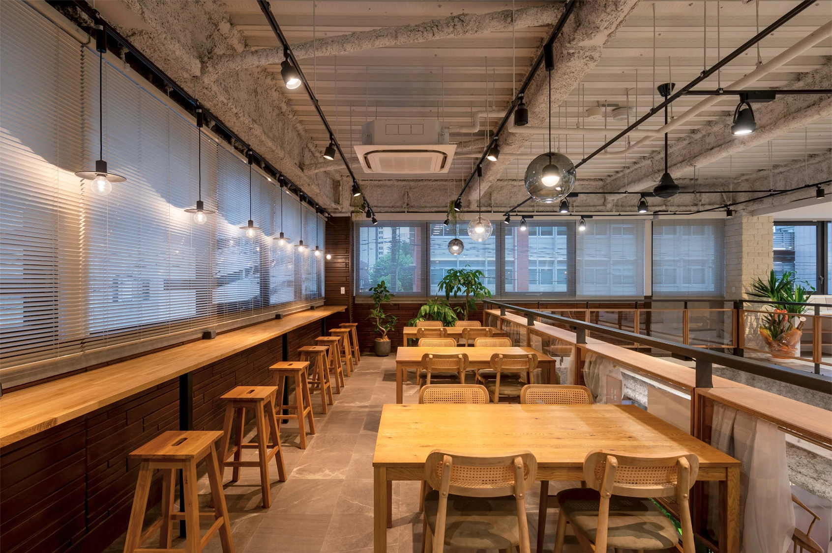 近年、オフィスにおいても「Well-Being」の考え方が広がり、働く人の快適性を重視した空間づくりが求められるようになっています。こうした流れの中で、住宅建築で培われてきた「居心地」を軸とした設計思想は、オフィス空間においても大きな強みとなります。たとえば、住宅で用いられることの多いペンダント照明やダクトレールといった照明計画は、住宅的な快適性をオフィスに取り入れる上で高い親和性を発揮します。