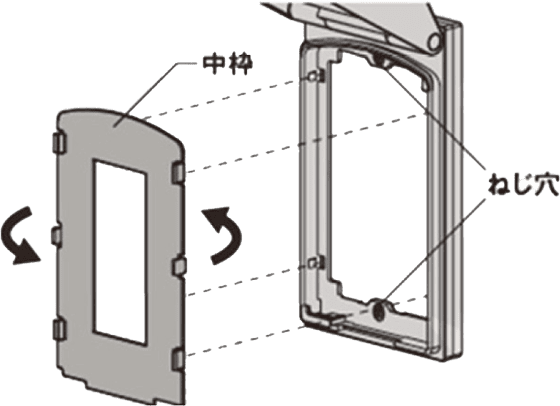 中枠の表裏を入れ替えることで各シリーズのコンセントに対応