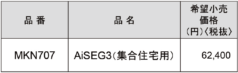 - AiSEG2(集合住宅用):MKN705は2027年3月生産終了予定