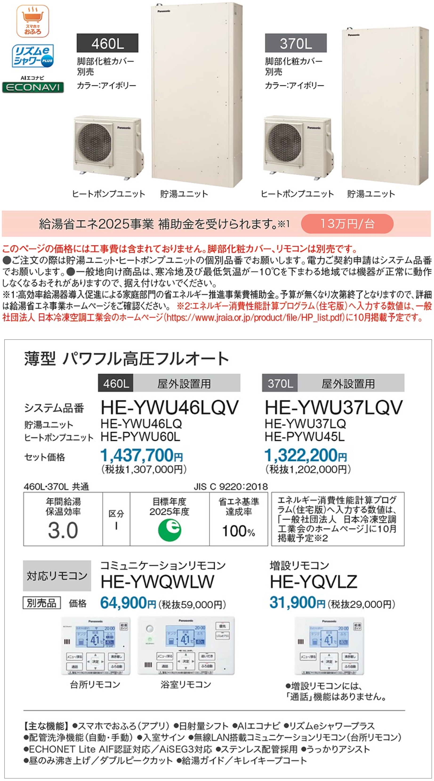 年間給湯保温効率(JIS)3.0- 給湯省エネ2025事業 補助金にも対応