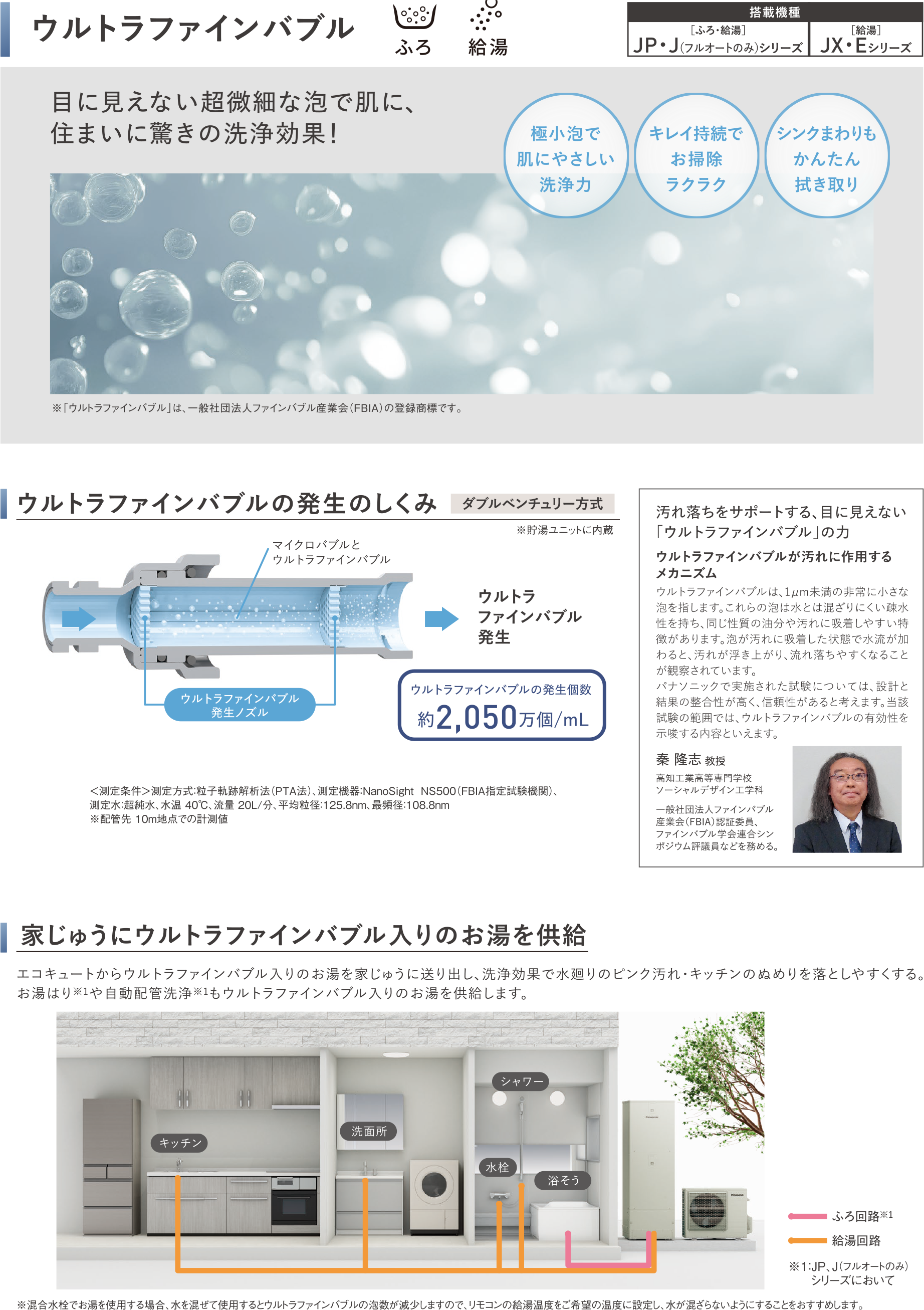 二つの微細な泡の力で、水廻りの清掃性と温浴効果を高めた家庭用自然冷媒(CO2)ヒートポンプ給湯「エコキュート」を発売します。