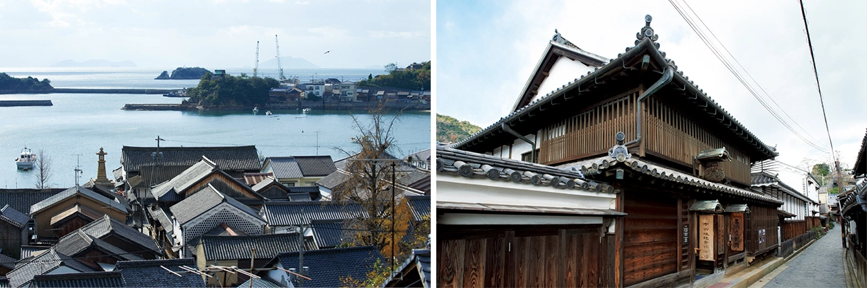 常夜燈など、江戸期の港湾施設が残る鞆の浦。太田家住宅はその中心部に位置する。旧所有者の中村家は保命酒の独占製造販売で隆盛を極め、邸宅近くの海を私費で埋め立てて多くの蔵を建てた。