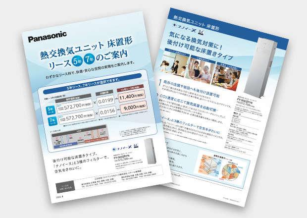 リースで実現できる換気対策をご存じですか?後付け可能な床置きタイプの熱交換気ユニットのリース提案チラシをご用意しました。