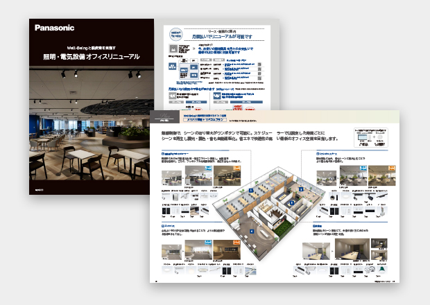 照明器具リニューアル提案の際に「Well-Being」と「脱炭素」を軸とした幅広い商材のご提案をしていただけるパンフレットです。