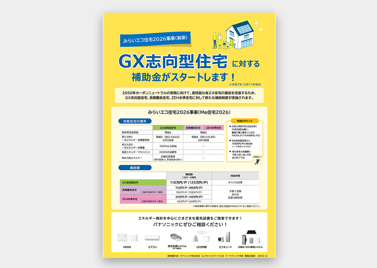 GX志向型住宅に対する新たな補助金制度がスタート!2050年カーボンニュートラルの実現に向けて、 高性能な省エネ住宅の建設を促進するため、 GX志向型住宅、 長期優良住宅、 ZEH水準住宅に対して新たな補助制度が実施されます。