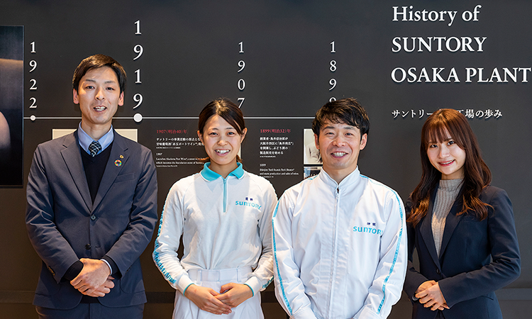 大阪工場は1919年に開設され、サントリー様の中で最も歴史の古い工場です。「赤玉ポートワイン」の瓶詰工場としてスタートし、今では世界有数の最新鋭の設備・製造環境を備え、ウイスキー、ブランデー、ジン、焼酎、リキュールなど様々なお酒を生産されています。