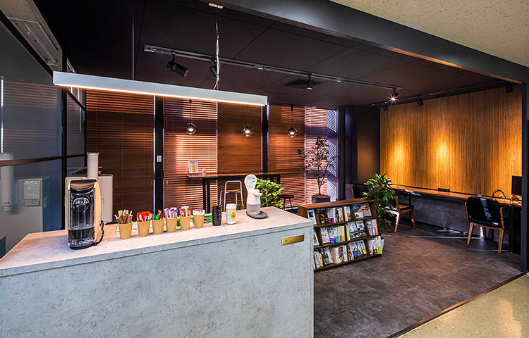 リニューアル後は、今まで事務所に立ち寄らなかった従業員の方々にも足を運んでいただけるようになり、出張で来られた方が利用されるスペースにもなっているとのこと。従業員様どうしのコミュニケーションの機会が増えたとお喜びの様子でした。