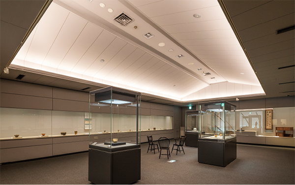 島根を代表する工芸品のコレクション展示室。今回のリニューアルで間接照明とダウンライトをLED化。