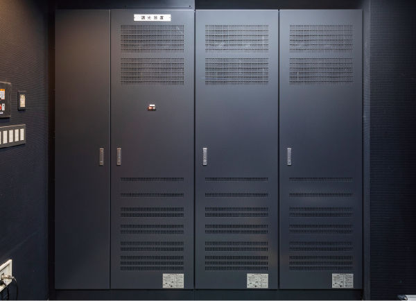 調光装置の入った分電盤。舞台照明は既設のハロゲン照明を残し、客席照明をLED化。
