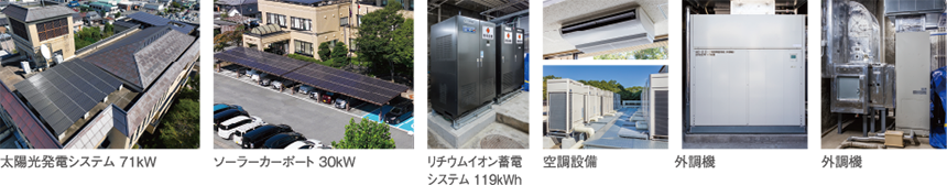 災害時の防災拠点となる役場・保健センターに、太陽光発電・蓄電システム、空調設備、LED照明、エマネージ等をご採用。災害時の電源確保を実現しつつ、脱炭素化・電気代削減・室内環境改善のトリプル効果も得られました。
