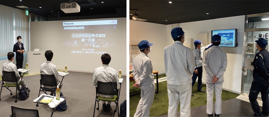 ところで愛知県内には、分電盤や計測器を製造しているパナソニ ック スイッチギアシステムズ株式会社の瀬戸工場があるのですが、ちょうどその時、瀬戸工場でカーボンニュートラルへの取り組みを実施しているということをパナソニックから聞きまして、お客様の参考になるのではないかと思い、お客様をお連れして一緒に見学することにしました。